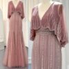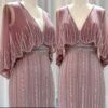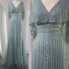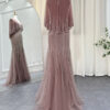 Luxury Modest Embellished Cape Sleeve Evening Dress, beautifully hand crafted together with sequins all over the dress, perfect mother of bride elegant formal dress.