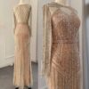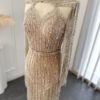 Luxury Modest silver embellished long sleeve evening gown, beautifully hand crafted together with sequins all over the dress.
