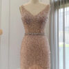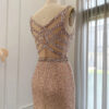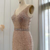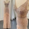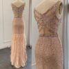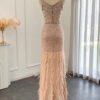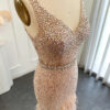 Luxury nude pink feathered sequin embellished evening dress, beautifully hand crafted together with sequins all over the dress.
