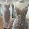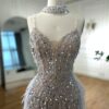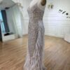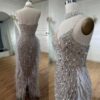 Luxury nude white sequin embellished evening bridal party dress, beautifully hand crafted together with sequins all over the dress.