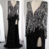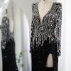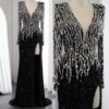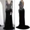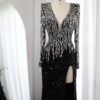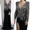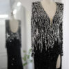 Lucury Plunge neck long sleeve sequin embellished evening party dress, beautifully hand crafted together with sequins all over the dress.