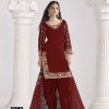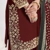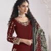 Maroon Color Patiala Dress in Roman Silk Fabric