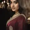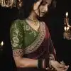 Maroon embroidered wedding saree, designed with sequin stone and zarkan work enhanced by fancy tassels. The saree comes with a contrast colour matching blouse.