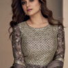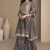 Mauve chinon silk embroidered palazzo suit, made with thread zari sequin work. Comes with top trouser and dupatta.