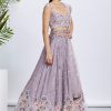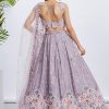 Mauve floral sequinned wedding lehenga Choli in pure chiffon delicately made with, thread, sequin, stone and diamond work. Comes with a matching choli and dupatta.