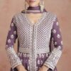 Mauve georgette anarkali lehenga suit made with thread zari sequin work. Comes with matching top, skirt and dupatta.