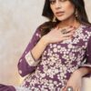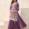 Mauve georgette embroidered palazzo suit, made with thread zari sequin work. Comes with top, trouser and dupatta.