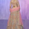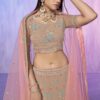Mauve heavy embroidered bridal lehenga choli, made with thread and zarkan work. Comes with matching lehenga, choli and net dupatta.