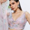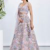 Mauve net floral embroidered bridal lehenga Choli, delicately made with, thread, sequin, stone and diamond work. Comes with a matching choli and dupatta.