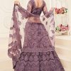 Mauve Net With Satin Silk Embroidered Lehenga Choli, designed with sequin, zari and resham work with emrboidered patterns and patch work. Comes with Cancan inner and matching choli set,