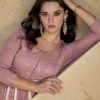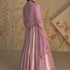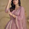 Mauve pink sequin thread Anarkali gown, made with sequence and embroidered work. Comes with matching top and net dupatta. Does not come with trouser.