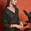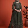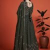 Mehendi green embroidered anarkali suit made with sequins and thread work. Comes with matching top, bottom and dupatta.