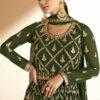 Mehendi green georgette embroidered anarkali suit made with thread zari sequin work at front. Comes with matching top, bottom and dupatta.