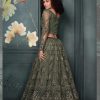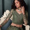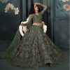 Mehendi green net bridal lehenga choli crafted with heavy work sequin and thread dori work. Comes with silk inner a matching choli and net dupatta.