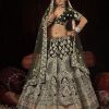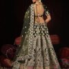 Mehendi velvet embroidered bridal lehenga choli, delicately crafted with thread, zari, sequin, stone and diamonds. Comes with a matching soft velvet lehenga, choli and net dupatta.