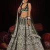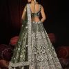 Mehendi velvet zari embroidered bridal lehenga choli, delicately crafted with, sequin, stone and diamonds. Comes with a matching soft velvet lehenga, choli and net dupatta.