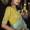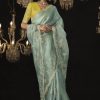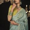 Mint Green embroidered wedding saree, designed with sequin stone and zarkan work enhanced by fancy tassels. The saree comes with a contrast colour matching blouse.