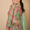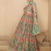 Mint green georgette Anarkali gown, made with sequence and embroidered work. Comes with matching top and net dupatta. Does not come with trouser.