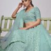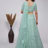 Mint green heavy embroidered bridal lehenga choli, made with thread, sequins and zarkan work. Comes with matching soft net lehenga, choli and dupatta.