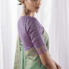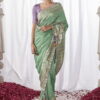 Mint Green kora silk wedding saree, designed with minakari, zari work enhanced by stone embroidery and tassels. The saree comes with a contrast green matching blouse.