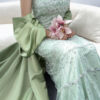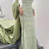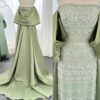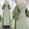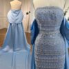 Modest beaded elegant evening dress with puff sleeve cape, beautifully hand crafted together with heavily embroidered sequin beaded work all over the inner dress, inner dress will be plain.