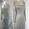 Modest long sleeve sequin embellished evening bridal party dress, beautifully hand crafted together with sequins all over the dress.