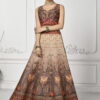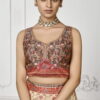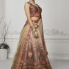 Multi colour satin silk wedding lehenga choli designed with digital print and intricate swarovski crystals on the lehenga. The outfit comes with a lehenga, choli and a soft net dupatta.