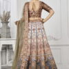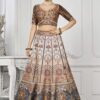 Multi colour satin silk wedding lehenga choli designed with digital print and intricate swarovski crystals on the lehenga. The outfit comes with a lehenga, choli and a soft net dupatta.