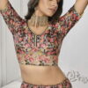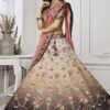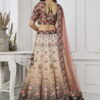 Multi colour satin silk wedding lehenga choli designed with digital print and intricate swarovski crystals on the lehenga. The outfit comes with a lehenga, choli and a soft net dupatta.