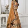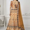 Multi colour satin silk wedding lehenga choli designed with digital print and intricate swarovski crystals on the lehenga. The outfit comes with a lehenga, choli and a soft net dupatta.