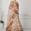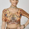 Multi colour satin silk wedding lehenga choli designed with digital print and intricate swarovski crystals on the lehenga. The outfit comes with a lehenga, choli and a soft net dupatta.