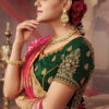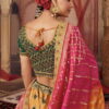 Multi coloured banarasi silk heavy embroidered bridal lehenga choli, made with thread and sequin work. Comes with matching lehenga, choli and dupatta.