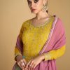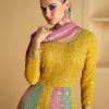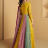 Multicolor sequin thread georgette Anarkali gown, made with sequence and embroidered work. Comes with matching top and net dupatta. Does not come with trouser.
