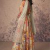 Multicoloured floral print side slit anarkali suit, made with sequence and embroidered work. Comes with georgette top, bottom and dupatta.