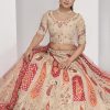 Multicoloured heavy embroidered bridal lehenga choli, made with thread, sequins and zarkan work. Comes with matching soft net lehenga, choli and dupatta.