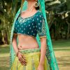 This will fit bust and waist sizes 32,34,36,38,40,42 (UK sizes 6-16). Top length 14-15″ – lehenga length 42” max. Slight variation in colour is possible. Model accessories and latkans not included. Second dupatta is optional and chargeable.