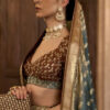 This will fit bust and waist sizes 32,34,36,38,40,42 (UK sizes 6-16). Top length 13-14” max. Lehenga length 42” max. Slight variation in colour is possible. Model accessories and latkans not included.