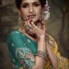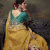 Mustard embroidered wedding saree, embellished with sequin stone and thread work enhanced by fancy tassels. The saree comes with a matching contrast blouse.