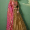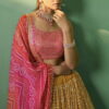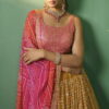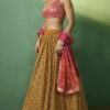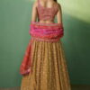 Mustard georgette embroidered lehenga choli, made with thread, sequin work. Comes with a matching georgette lehenga, choli and organza dupatta.