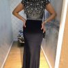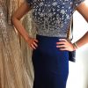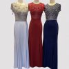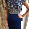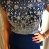 Navy Blue Cap Sleeve Beaded Evening Dress, beautifully hand made together with crystal bead patterns on the dress with empire waistline this comes with padded bust.