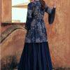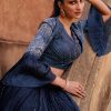 Navy blue chinnon silk jacket style designer Lehenga choli, made with thread zari sequin work. Comes with lehenga and a matching top with jacket. This does not come with a dupatta.