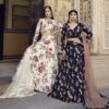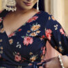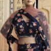 Navy blue crush silk floral print lehenga choli, made with lace work. Comes with a matching silk lehengacholi and georgette dupatta.