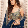 Navy Blue faux georgette heavy designer lehenga choli made with handwork thread and sequins. Comes with matching choli and dupatta.