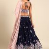 Navy blue georgette floral embroidered sungeet lehenga Choli, delicately made with, thread, sequin and stone work. Comes with a matching choli and dupatta.