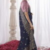Navy blue kora silk wedding saree, designed with minakari, zari work enhanced by stone embroidery and tassels. The saree comes with a contrast green matching blouse.