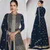Navy blue lehenga style Anarkali suit, made with sequence and embroidered work. Comes with matching georgette top, dupatta and lehenga.