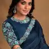 Navy Blue satin silk designer saree crafted with sequin and cord embroidery work. The saree comes with a unstitched matching blouse.
