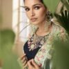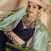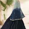 Navy Blue silk jacket style Lehenga choli, made with thread zari sequin work. Comes with matching top, skirt and jacket.