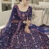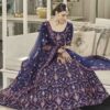 Navy blue silk party wear lehenga choli, thread with sequence embroidered work. Lehenga comes with a matching choli and net dupatta.