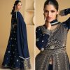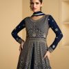 Navy sequin thread georgette Anarkali lehenga, made with sequence and embroidered work. Comes with matching top and net dupatta and lehenga.